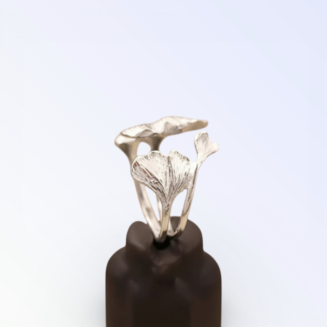 Anillo vintage de plata con flor