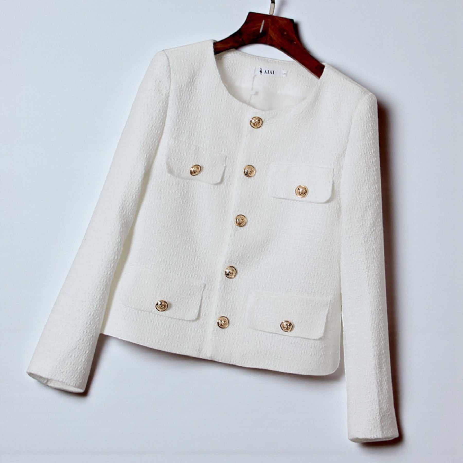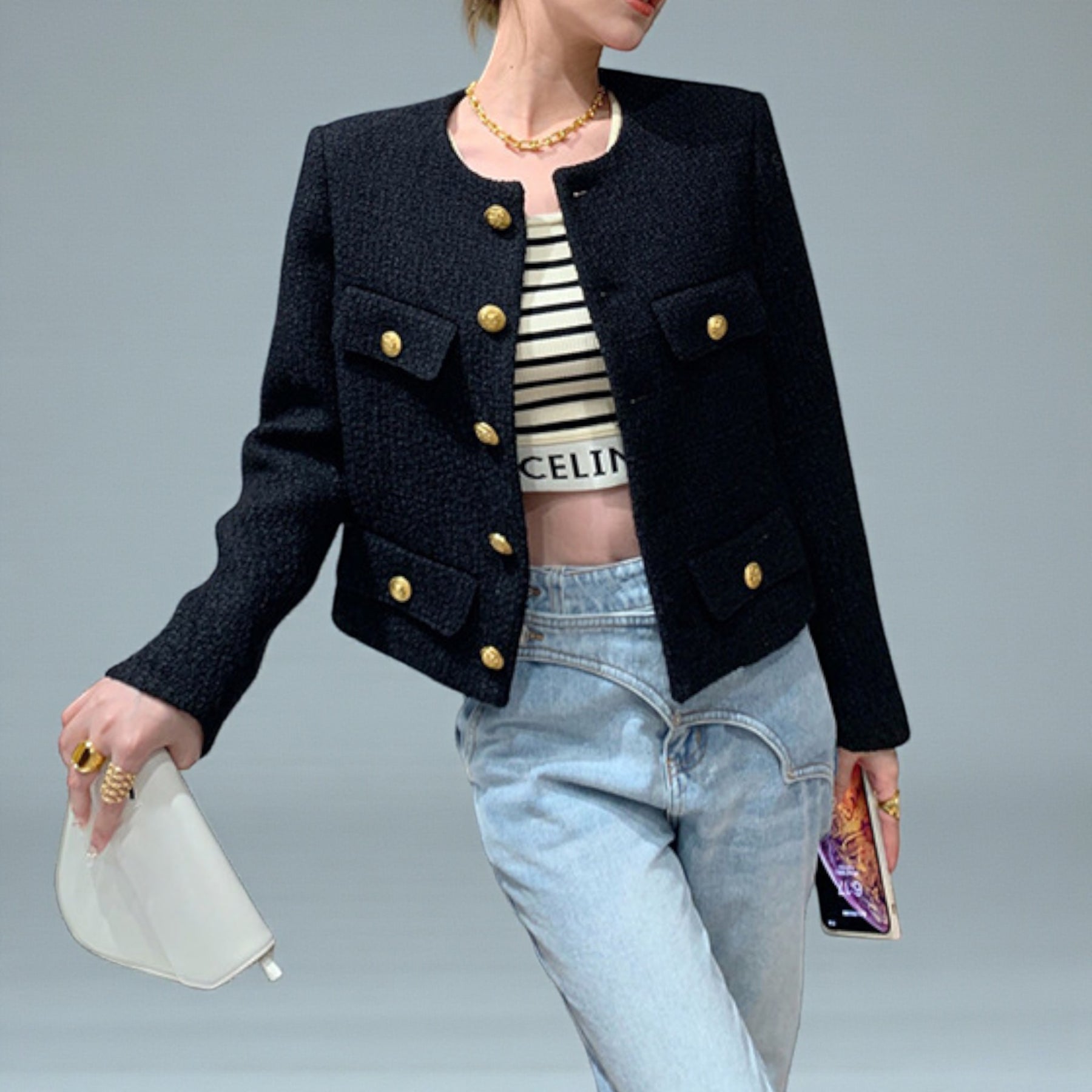 Elegancia premium en tweed clásico. Un abrigo corto que combina tradición y modernidad.