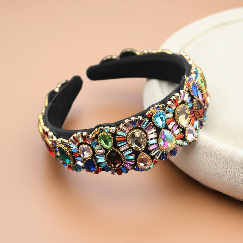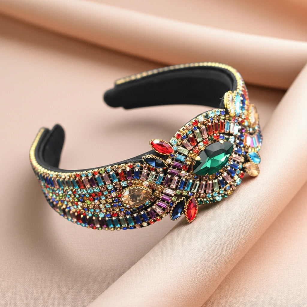 Elegancia superior en sofisticados cristales de colores con un diseño ornamental. Una tiara que combina tradición y modernidad.
