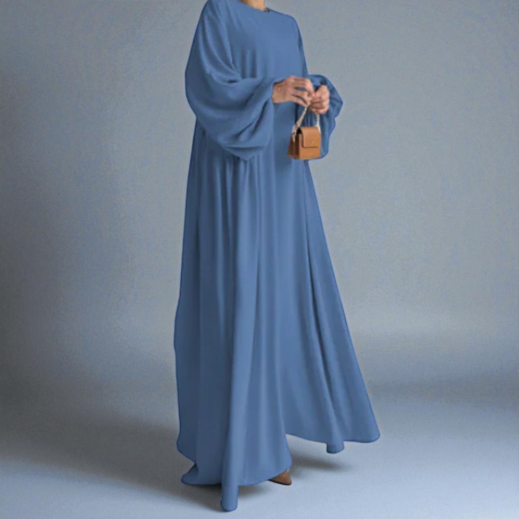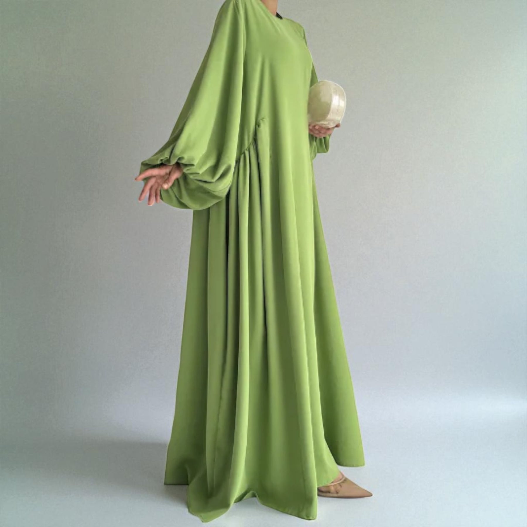 Elegancia mediterránea en cada detalle. Sofisticado diseño de caftán con mangas de obispo que combina tradición y modernidad.