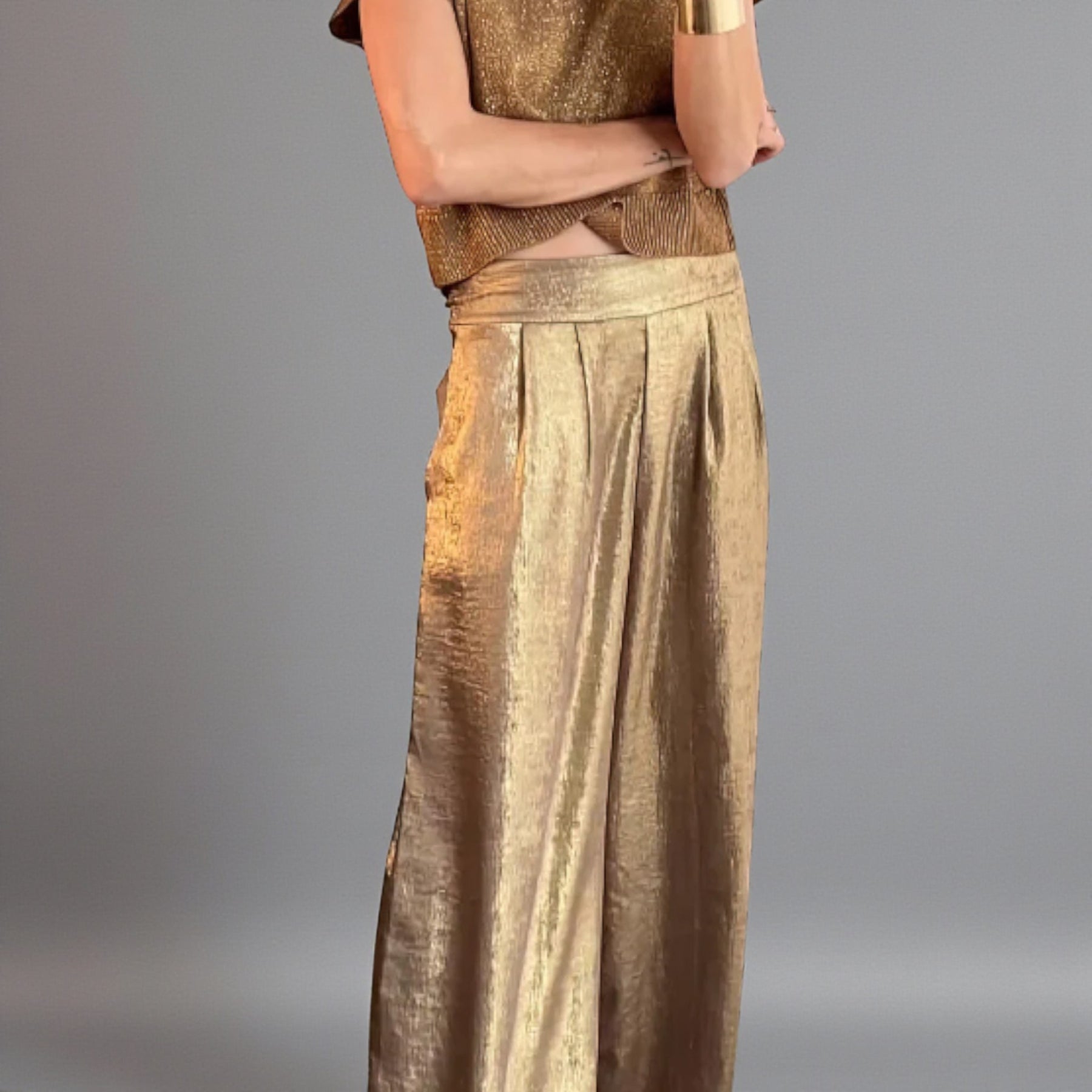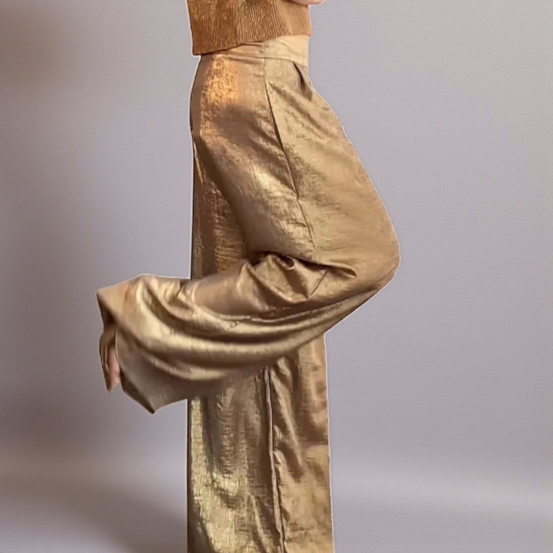 Déjate inspirar por la elegancia atemporal de estos pantalones y siéntete como una auténtica diosa cósmica con esta pieza que transforma cada ocasión en una declaración de estilo donde tú eres la principal protagonista. - Marca KUKA