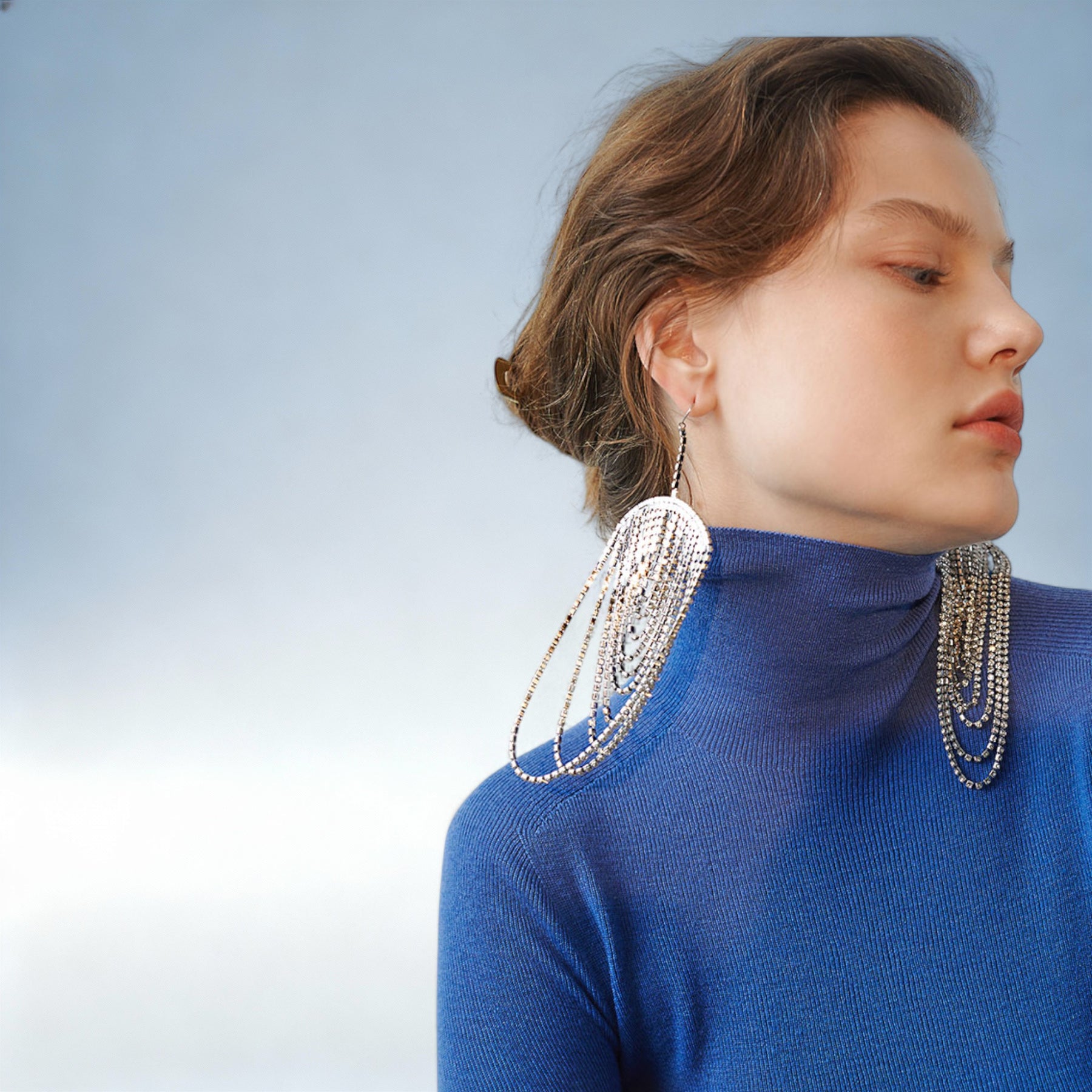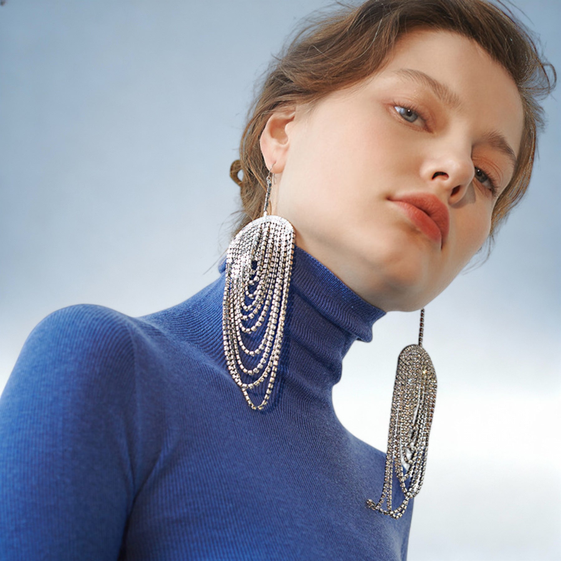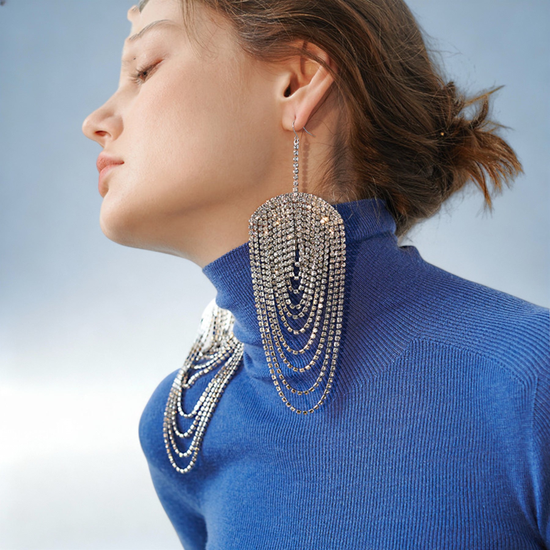 Leves e confortáveis, estes brincos com franjas são feitos em liga metálica premium com strass brilhantes e destacam-se pelo design detalhado, perfeitos para ocasiões especiais, eventos profissionais ou para adicionar um toque clássico ao teu dia a dia.
