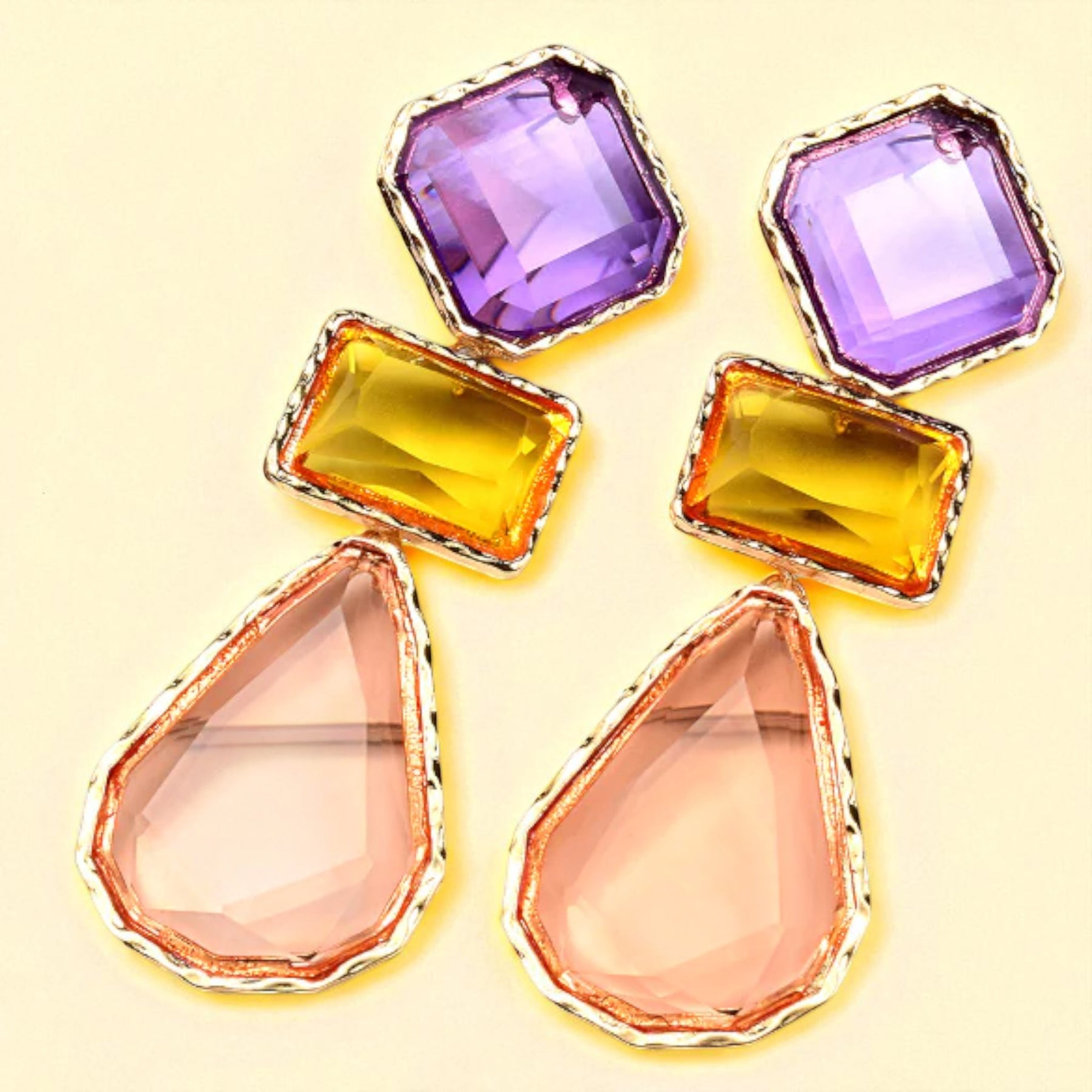 Elegancia geométrica en cada detalle. Diseño sofisticado con piedras multicolores que combina modernidad y sofisticación.