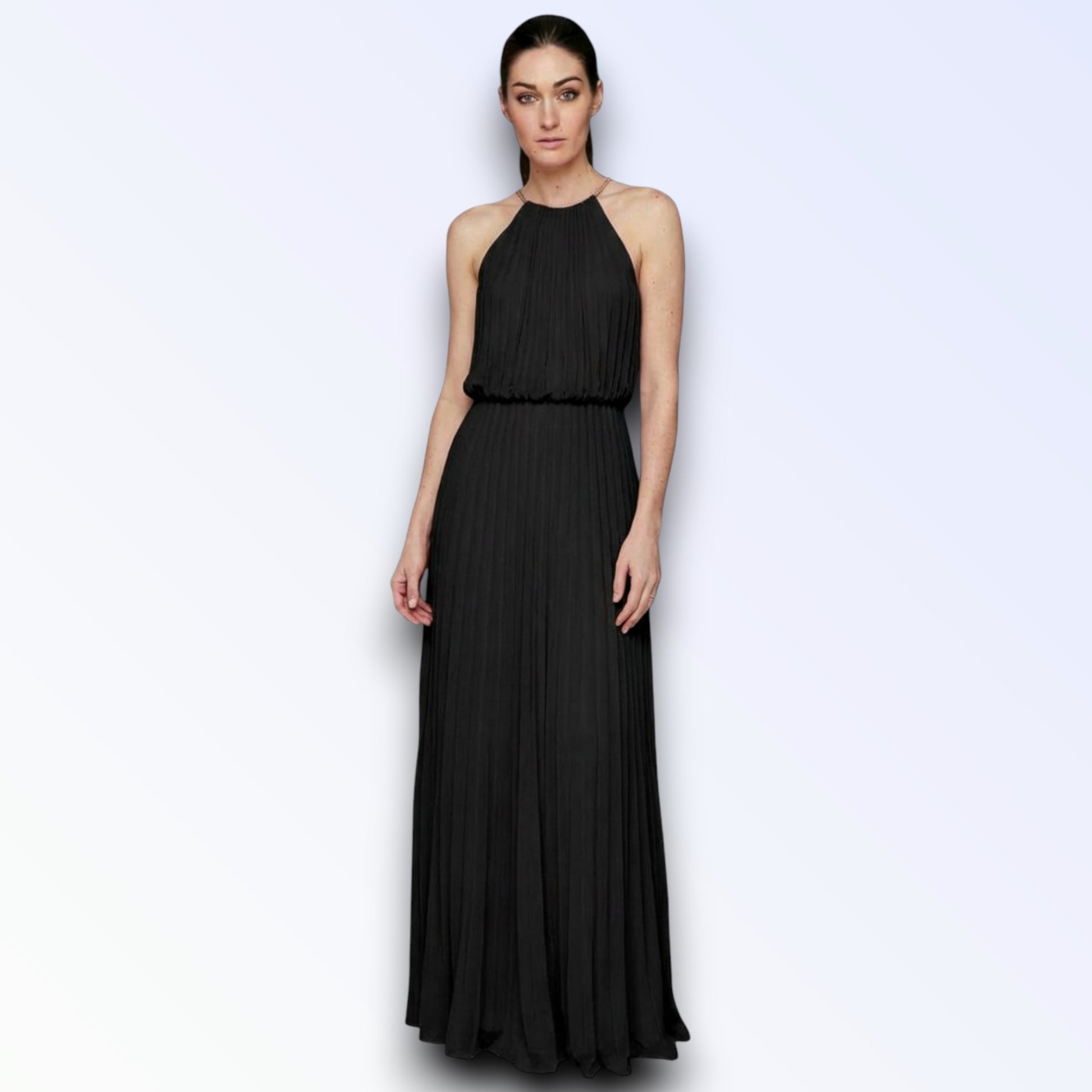 Plisado negro con cuello cruzado, bolsillos laterales — misterio fluido KUKA Brand