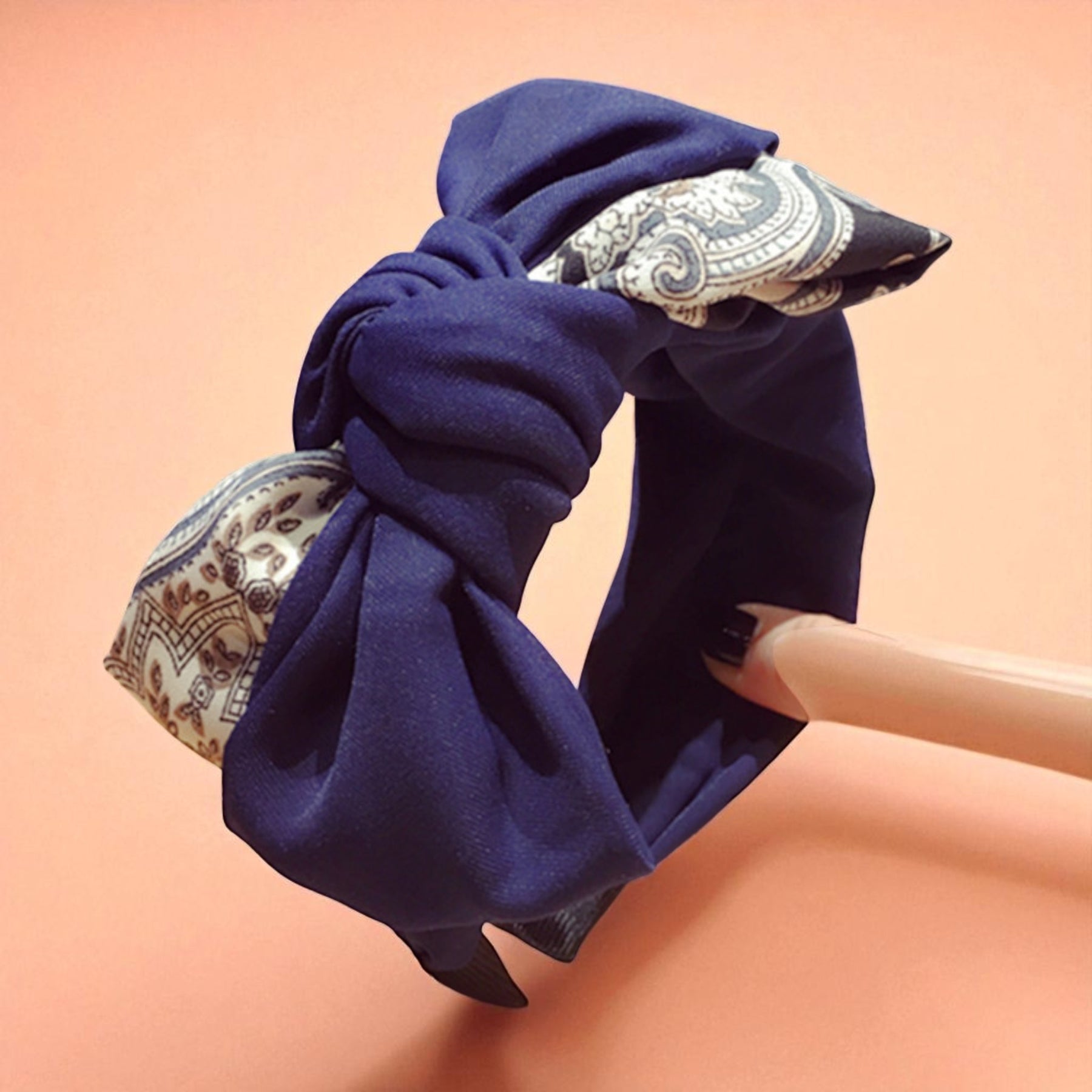Elegância premium em tecido floral sofisticado com laço romântico. Bandolete que combina tradição e modernidade.