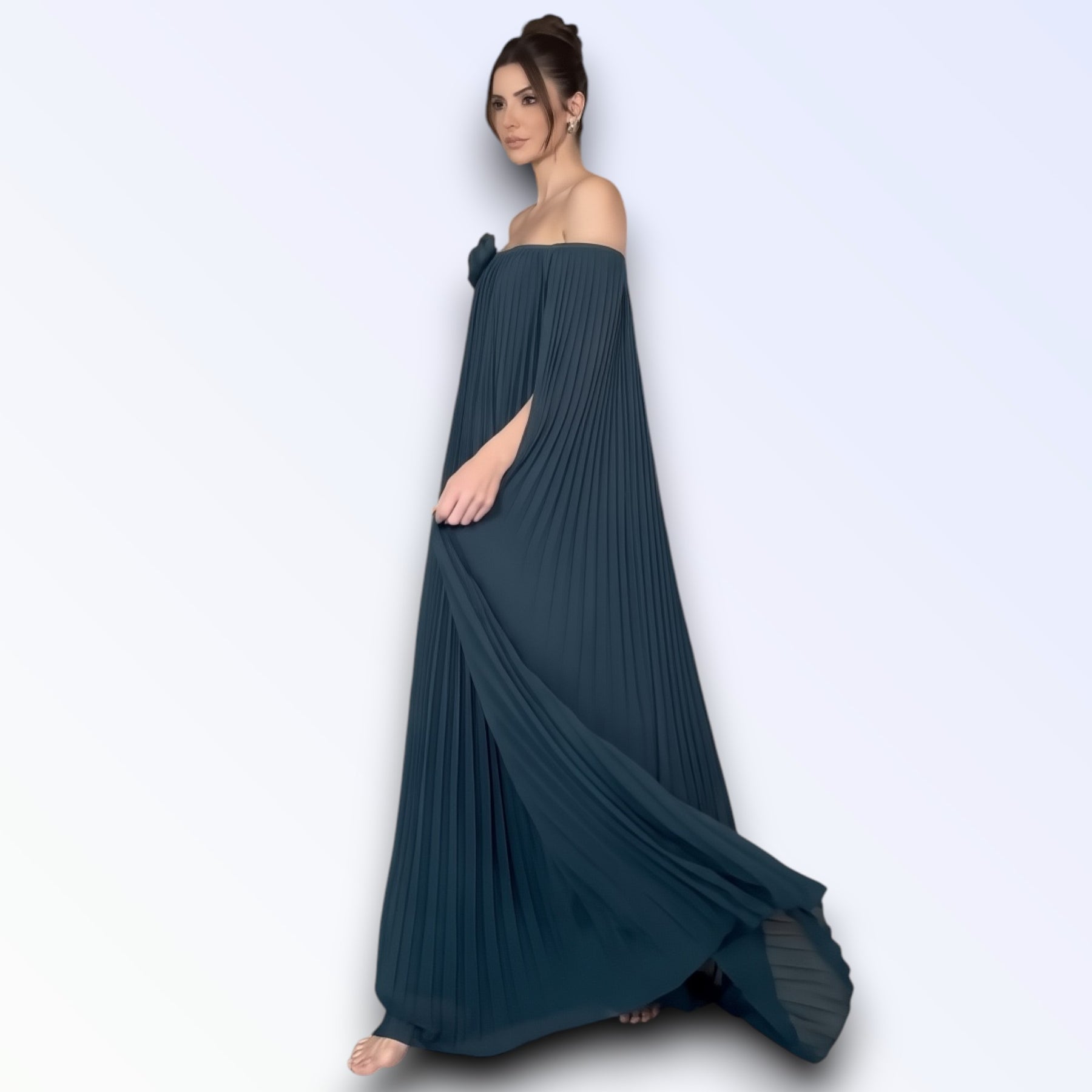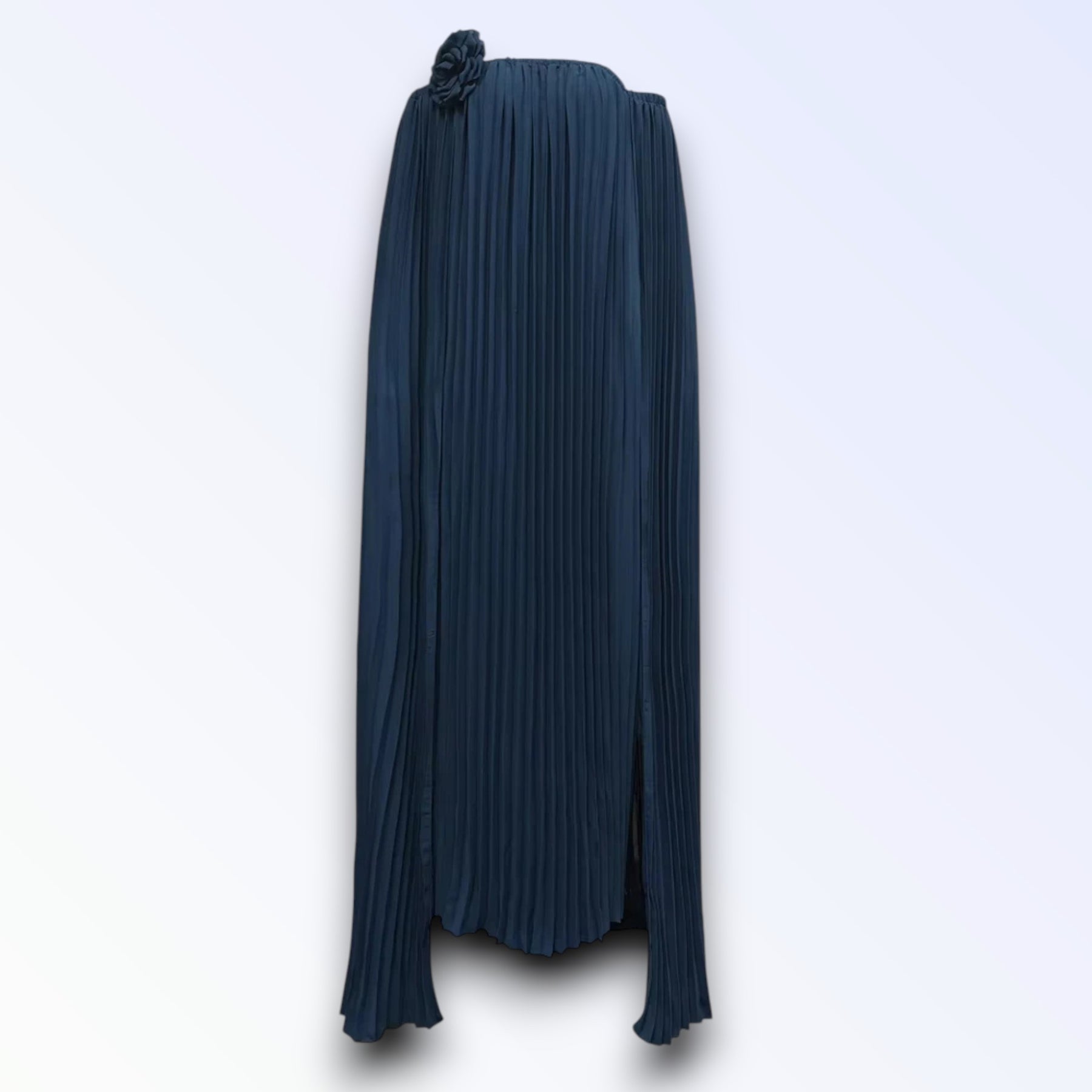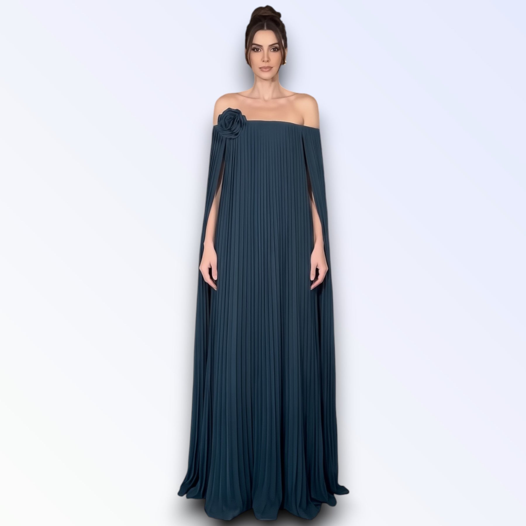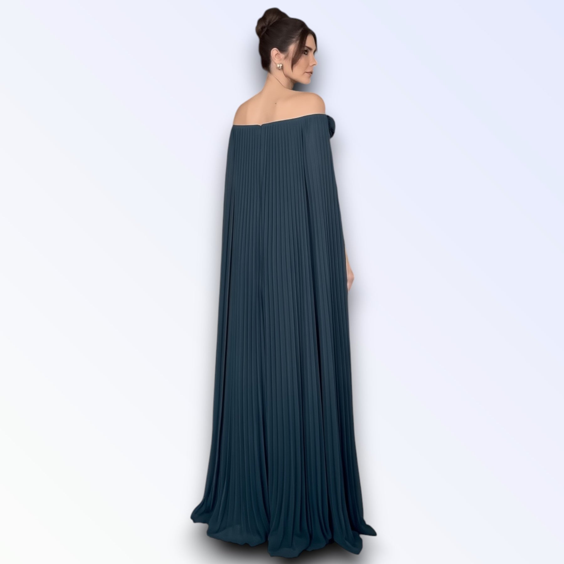 O plissado integral acompanha cada passo com leveza, criando uma estética envolvente e harmoniosa. Ideal para cerimónias, eventos formais ou ocasiões especiais onde a elegância exige destaque, esta peça reflete distinção, feminilidade e autoridade estética.